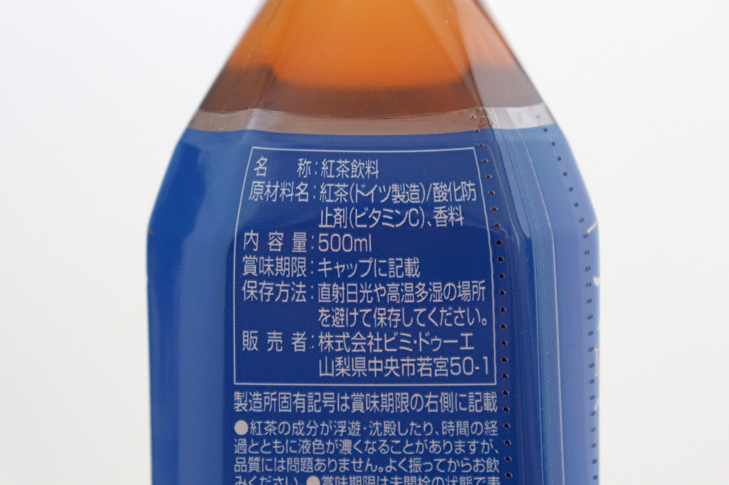 内容量 500ml原材料:紅茶(ドイツ製造)/酸化防止剤(ビタミンC)、香料保存方法:直射日光や高温多湿の場所を避けて保存してください。注意事項:紅茶の成分が浮遊、沈殿したり時間の経過とともに液色が濃くなることがありますが、品質に問題はありません よく振ってからお召し上がりください