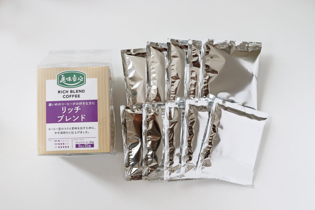 内容量:ドリップコーヒー80g(8g×10袋) 原材料名:コーヒー豆(生豆生産国名:ブラジル、ベトナム他)保存方法:高温多湿を避けて保存して下さい。使用上の注意:開封後は、できるだけお早めにお召し上がりください。