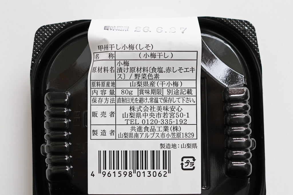 内容量 80g原材料名:小梅(山梨県産)、漬け原材料(食塩、赤しそエキス)、野菜色素保存方法:直射日光を避け、常温で保存してください。